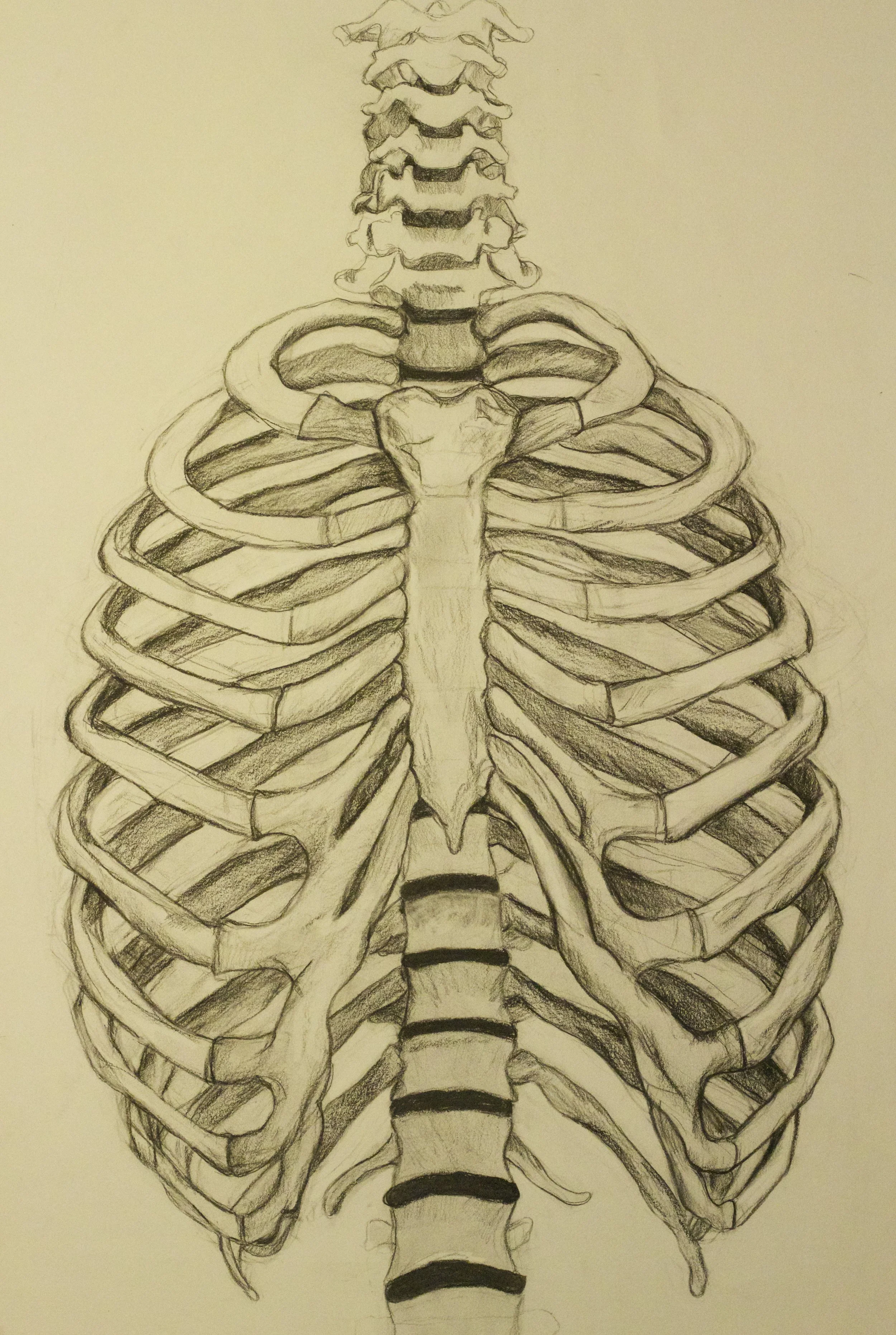 Ribcage Study, Charcoal on grey tone paper, 30 x 22 in
