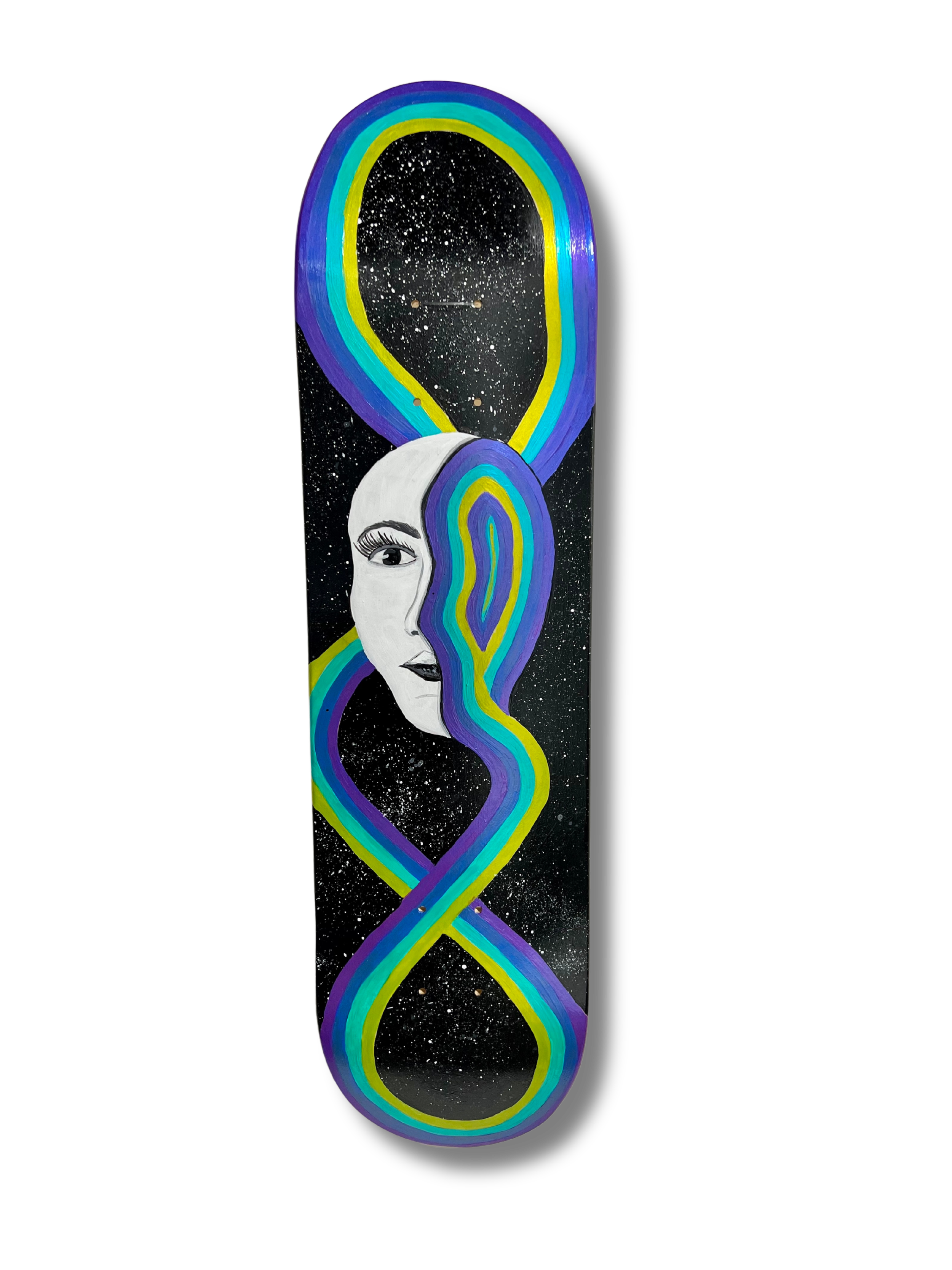 Acrylic on skateboard, 31 x 8 in